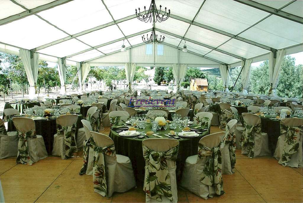 Con la carpa puede protegerse y cubrir sólo el techo o llegado el caso cerrar en el momento las paredes. La carpa puede climatizarla y decorarla a su gusto, personalizando de esta forma cada celebración.